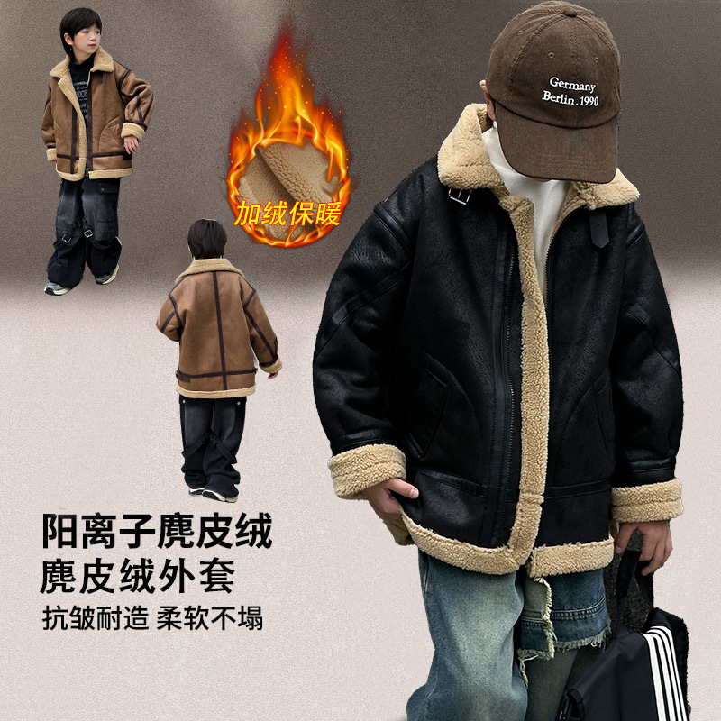 男童加绒外套2025冬装新款中大童加厚上衣帅气男孩保暖儿童夹克衫