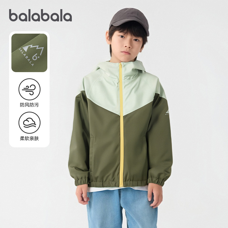 巴拉巴拉男童外套儿童连帽夹克儿童户外防风上衣2025秋季新款童装