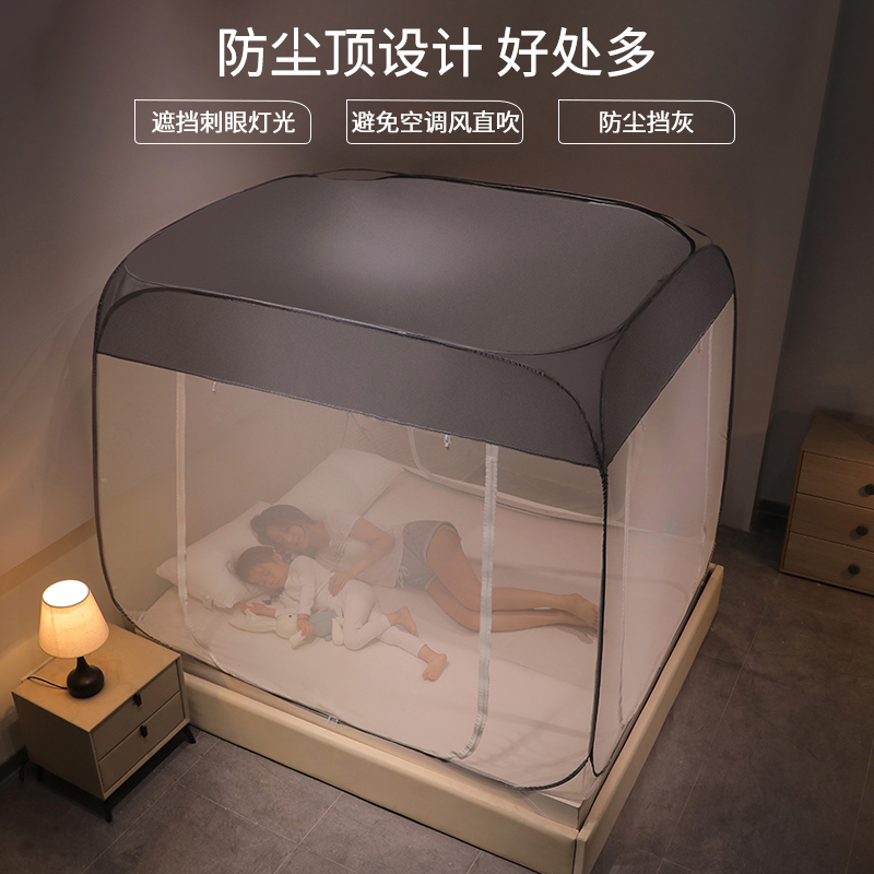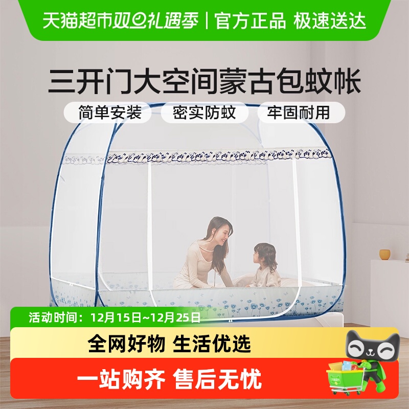 A类蒙古包蚊帐免安装方顶折叠三门儿童宝宝加密拉链1.2米1.8通用