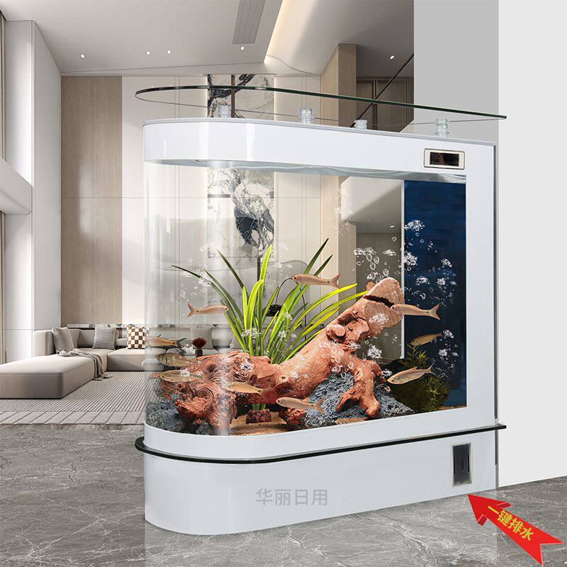 子弹头鱼缸客厅家用中型水族箱玻璃1.2米1.5米生态落地屏风鱼缸