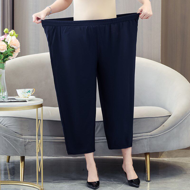 中老年人女装妈妈夏装休闲时尚套装遮肚大码短袖上衣阔腿裤两件套