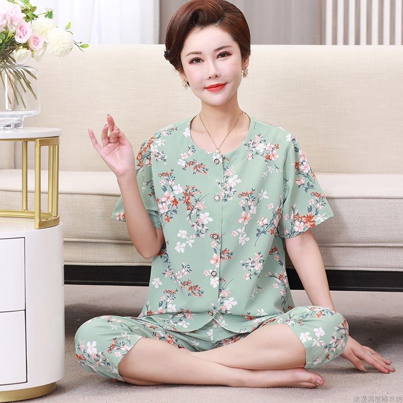 中老年女装夏季短袖大码冰丝套装妈妈装夏装老年人夏天休闲两件套