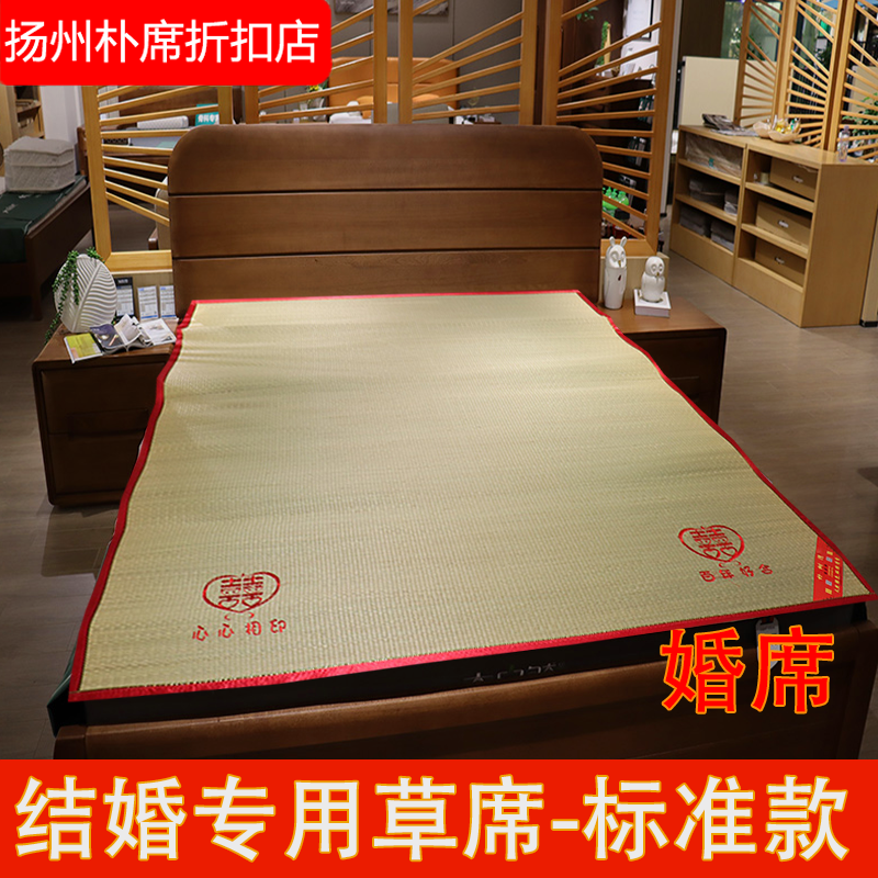 天然草席1.8米婚席大床红色凉席红双喜婚嫁席绣花席结婚用双面席