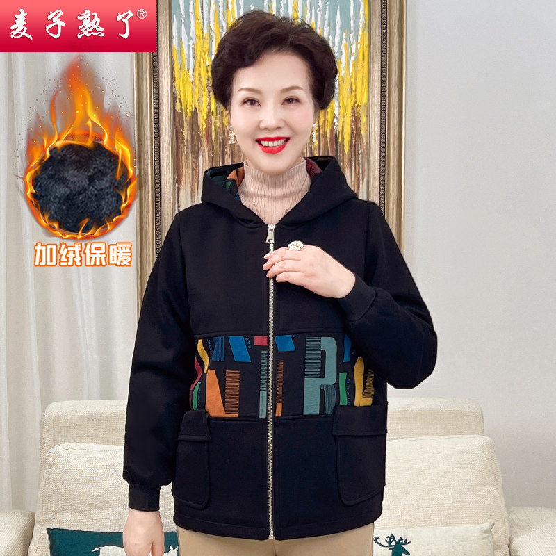中年妈妈纯棉连帽外套女加绒加厚2025春秋装新款夹克秋冬棉衣棉服