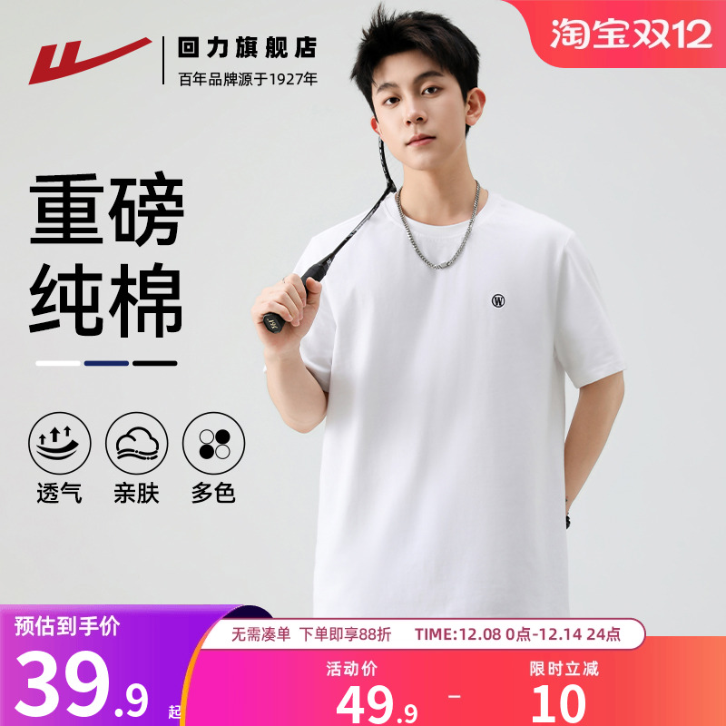 回力纯棉t恤短袖男款2025新款夏季重磅男士半袖正肩白色T男生上衣