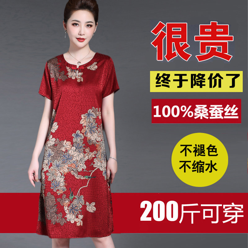 重磅真丝连衣裙夏季新款中老年女装气质妈妈宽松大码显瘦中长裙子
