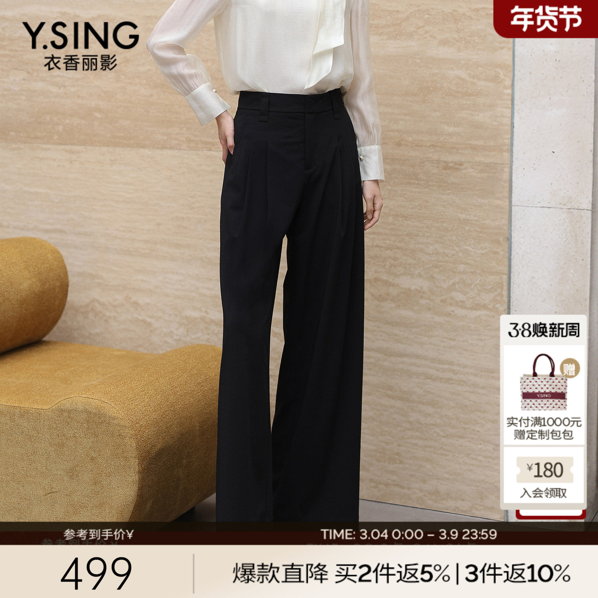 衣香丽影黑色宽松阔腿裤女2026年春装新款休闲西装裤子150316108