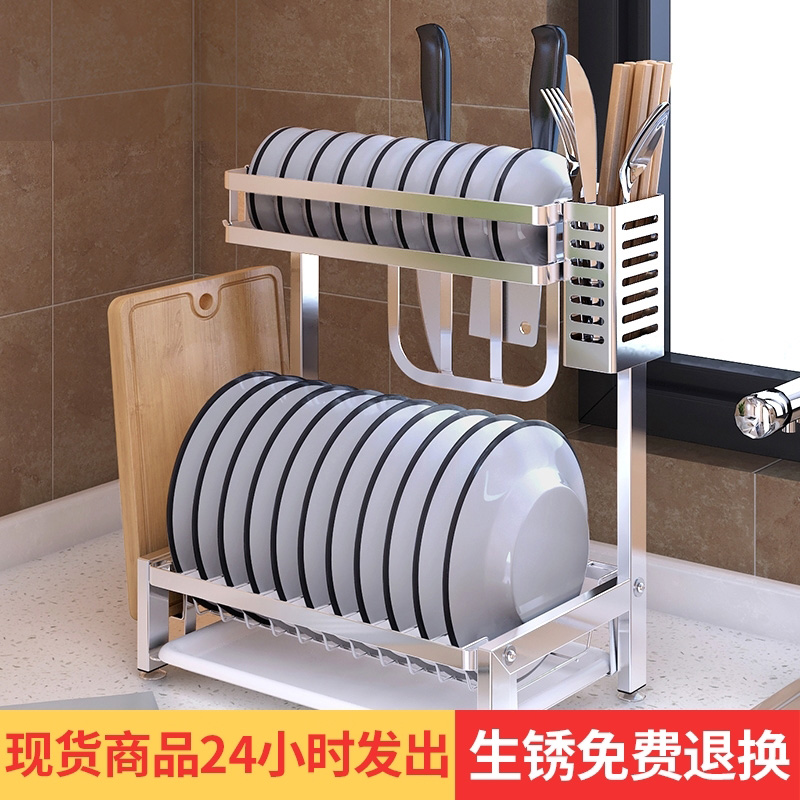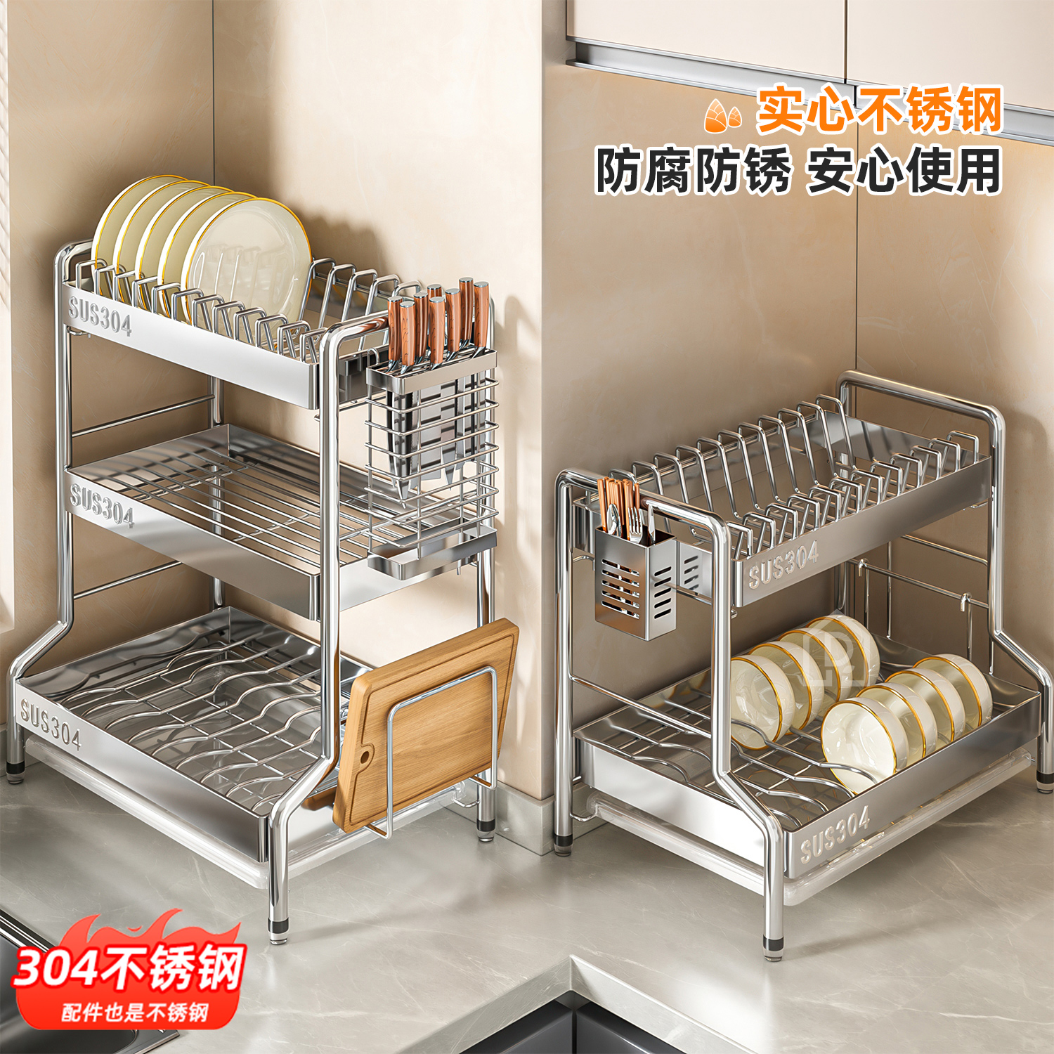 304不锈钢碗架沥水架厨房多功能双层置物架放碗筷碗盘碗碟收纳架