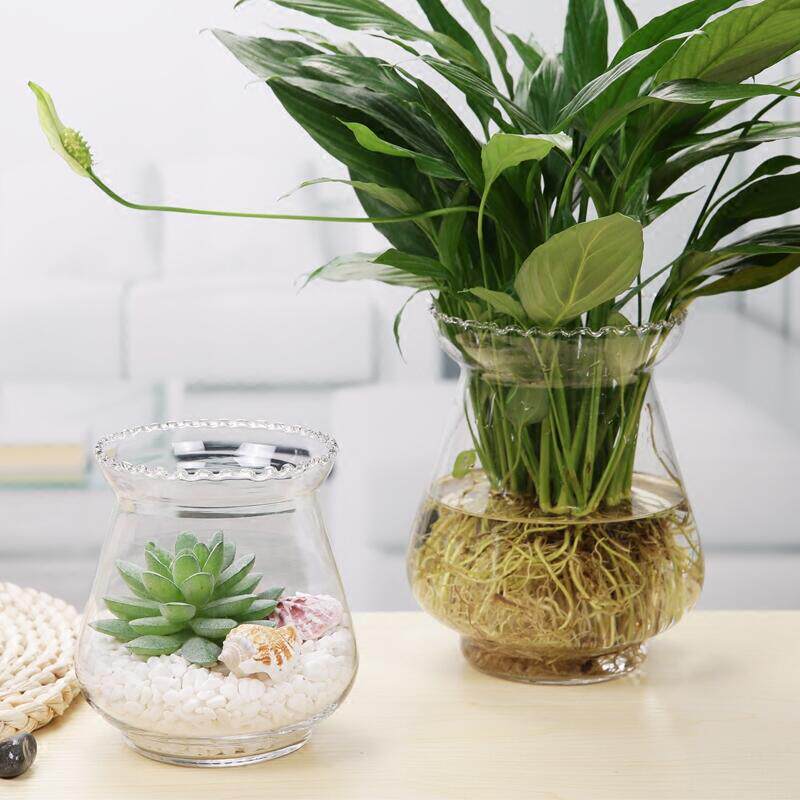 高档创意绿萝玻璃花水培植物花盆明鲜花插花器水养皿绿透植容器瓶