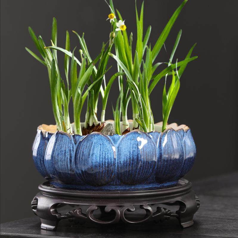 无孔水培植物花盆水仙盆碗莲睡莲花盆水养盆陶瓷复古大口径石斛盆