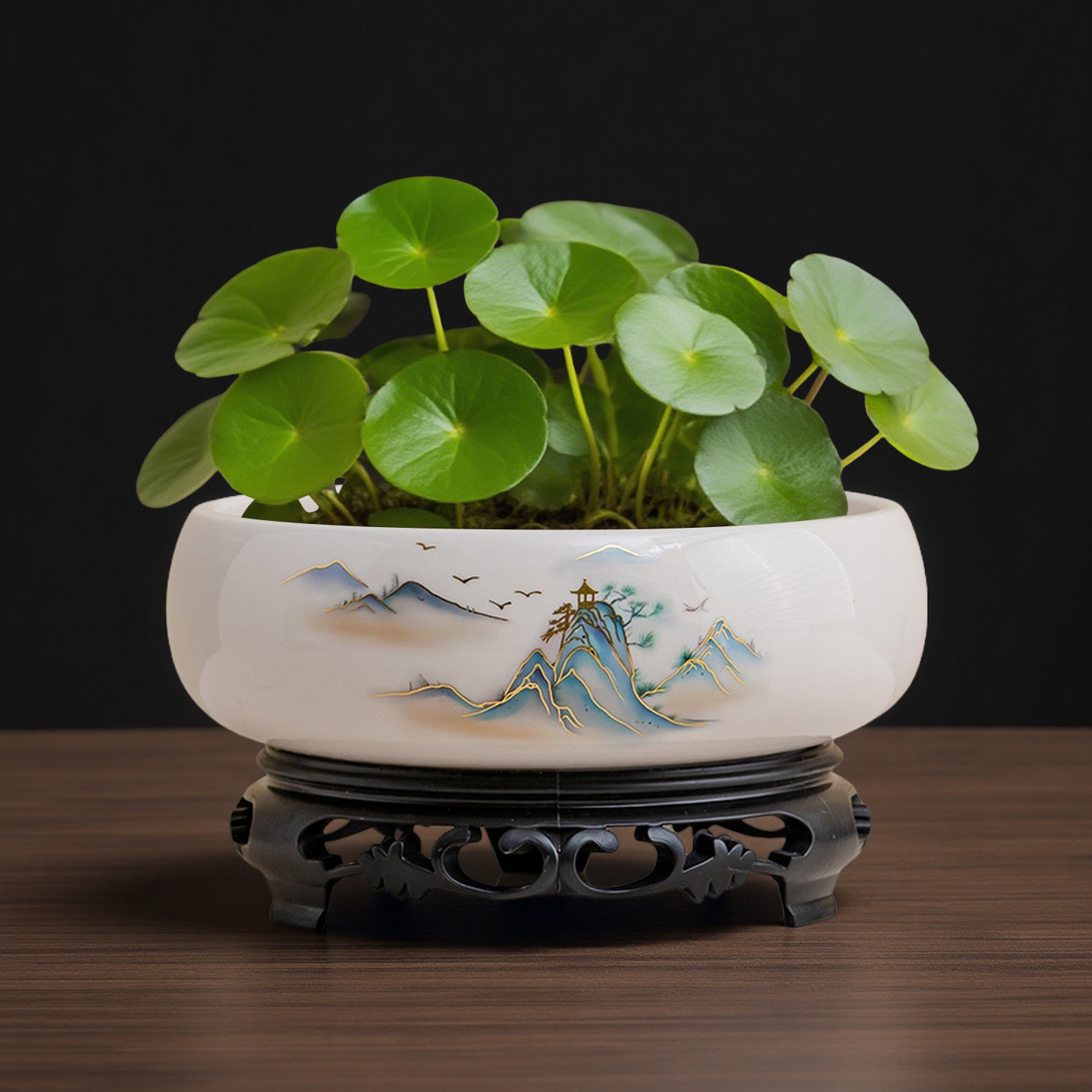 花盆陶瓷铜钱专用花盆睡莲碗莲水培器皿金钱草养花植物容器水仙缸