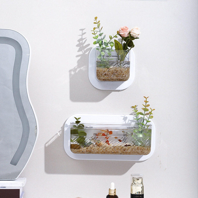 创意墙壁塑料花瓶办公室迷你壁挂鱼缸悬挂式水培植物花盆客厅装饰