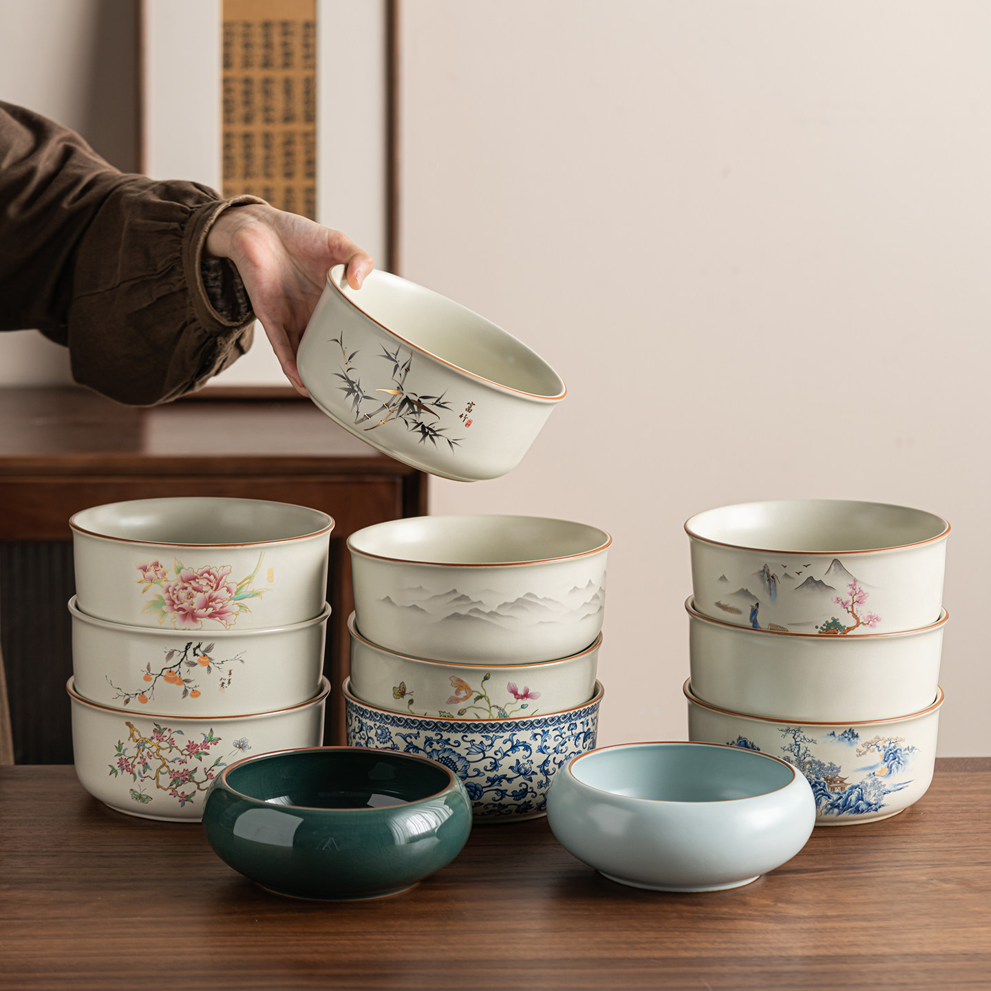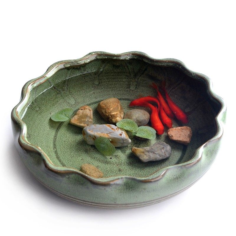 汝窑开片水仙花盆陶瓷大号古典无孔创意铜钱草碗莲盆水培植物花盆