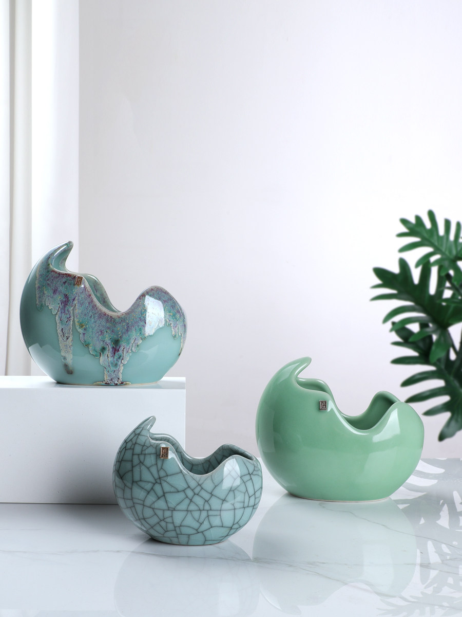 古法小鱼缸客厅小型乌龟金鱼缸创意龟缸家用水培植物花盆陶瓷摆件