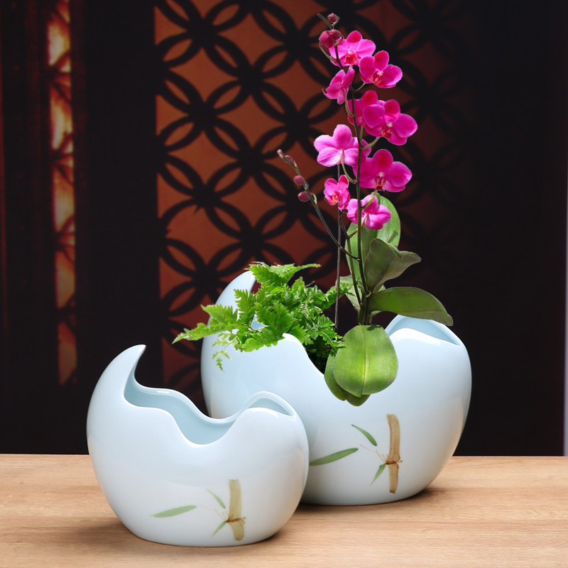 多肉花盆陶瓷大号水仙花盆无孔铜钱草养鱼缸简约水培植物花盆陶盆
