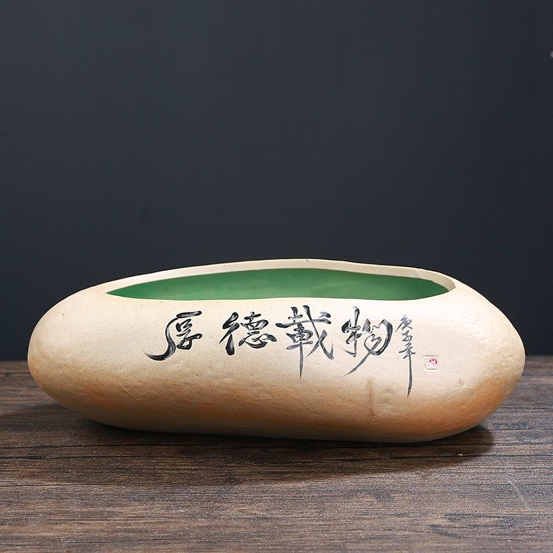 无孔水仙花盆陶瓷铜钱草睡莲碗莲家用特大号仿石专用水培植物花盆