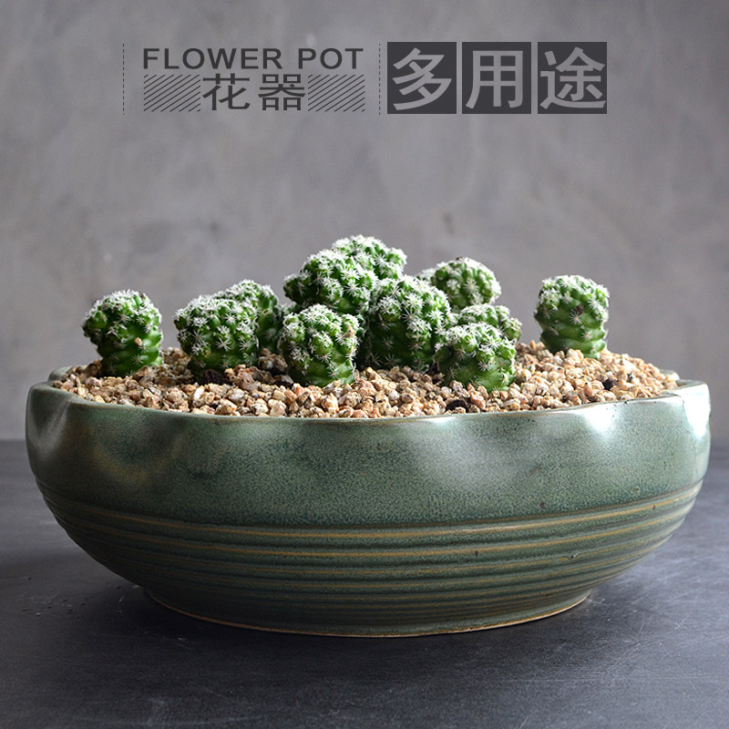仿石多肉花盆陶瓷鱼缸水仙花盆无孔水培植物花盆铜钱草碗莲大号盆