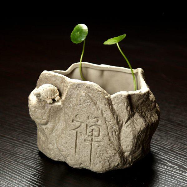 石头造型陶瓷粗陶小花瓶禅意摆件小装饰品水培植物花盆小清新花插
