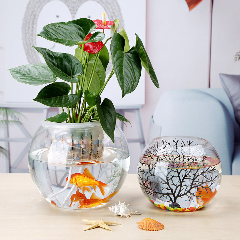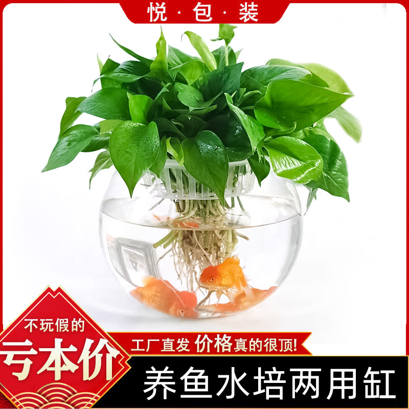 大号玻璃水培植物花盆办公室桌面水养绿萝铜钱草花瓶圆形透明鱼缸