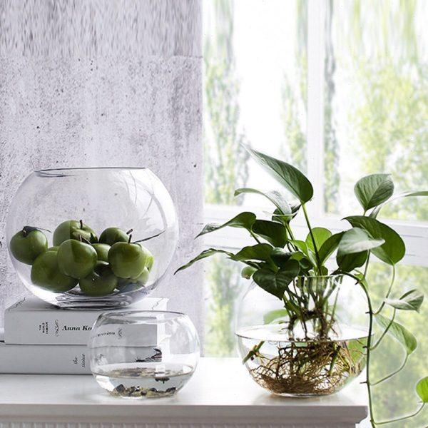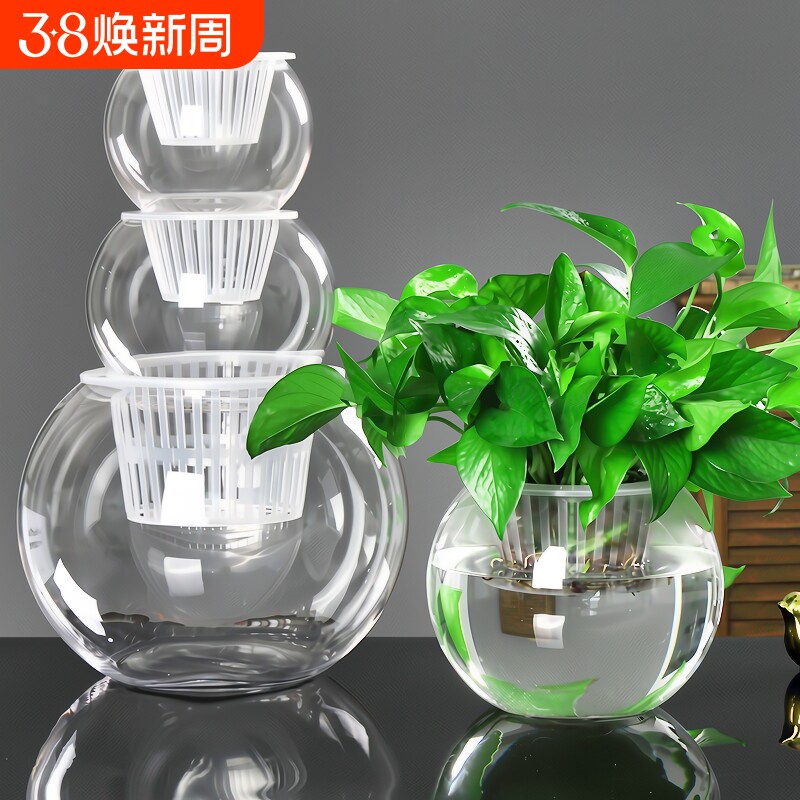 大号玻璃水培植物花盆办公室桌面水养绿箩铜钱草花瓶圆形透明鱼缸