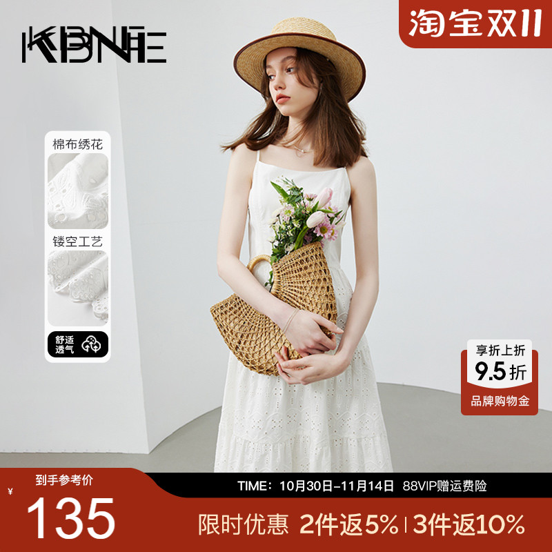 KBNE连衣裙女白色吊带裙长裙小白裙2025夏季新款小个子背心裙子