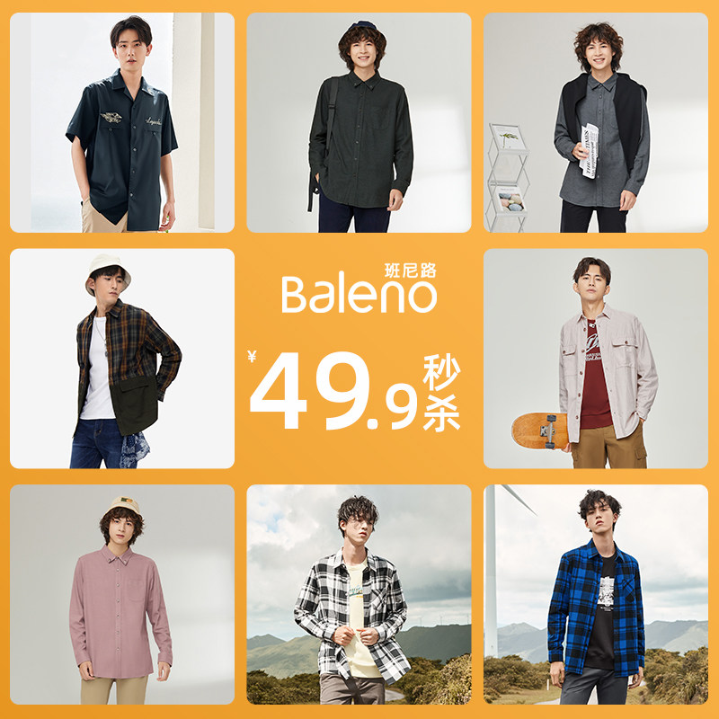 班尼路纯色衬衣男款春秋自然垂顺短袖衬衫男士翻领长袖叠穿外套Z