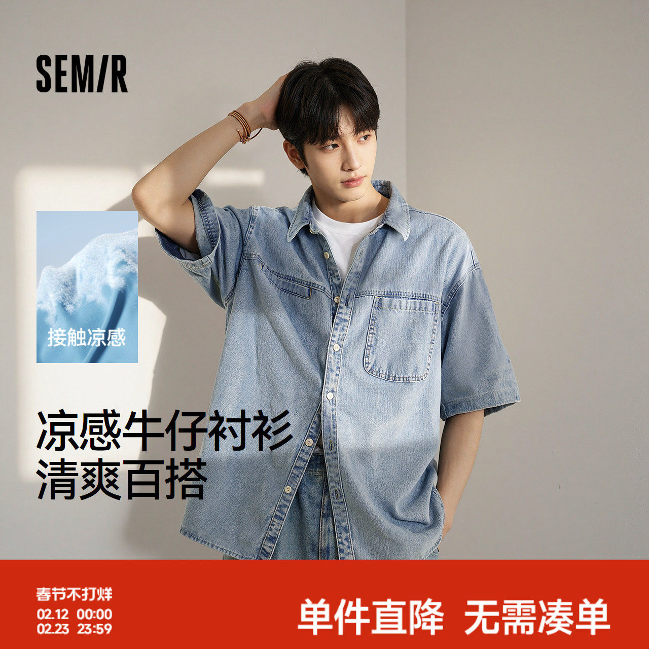 森马短袖衬衫男复古水洗牛仔外套凉感2025夏新款上衣宽松时尚百搭