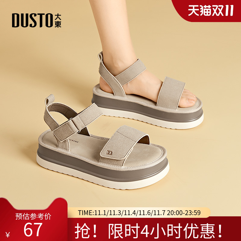 大东勃肯鞋女鞋2025夏季新款休闲平底中跟魔术贴露趾厚底0731Z