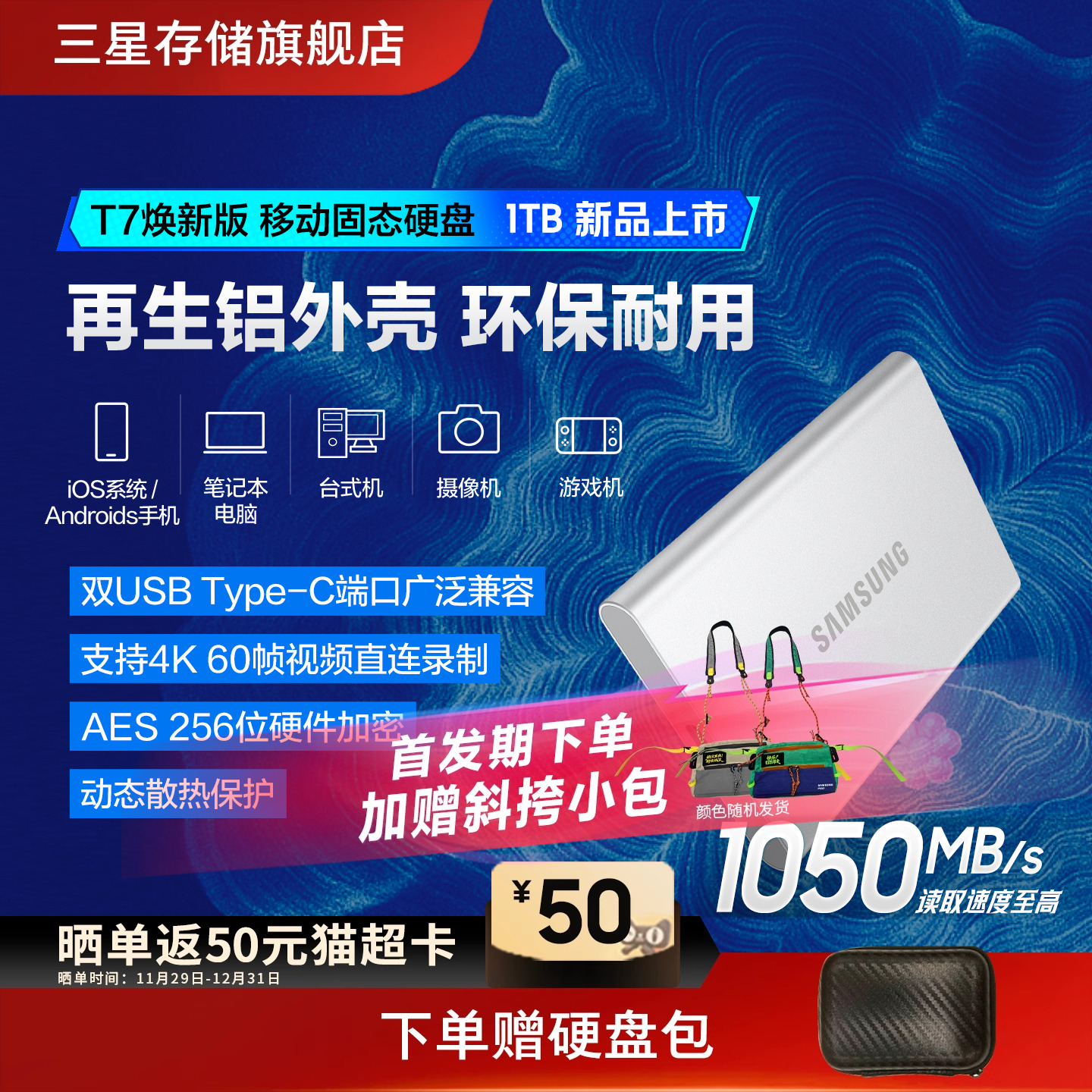 三星T7焕新版移动固态硬盘1TB环保再生铝外壳USB3.2电脑手机PSSD