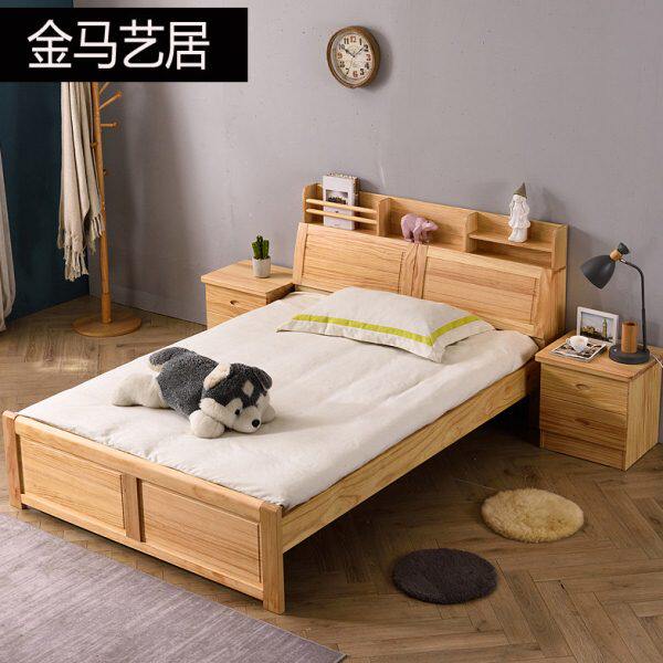全实木床软包床家用卧室办公室松木1.5m双人床出租屋床1.2m单人床