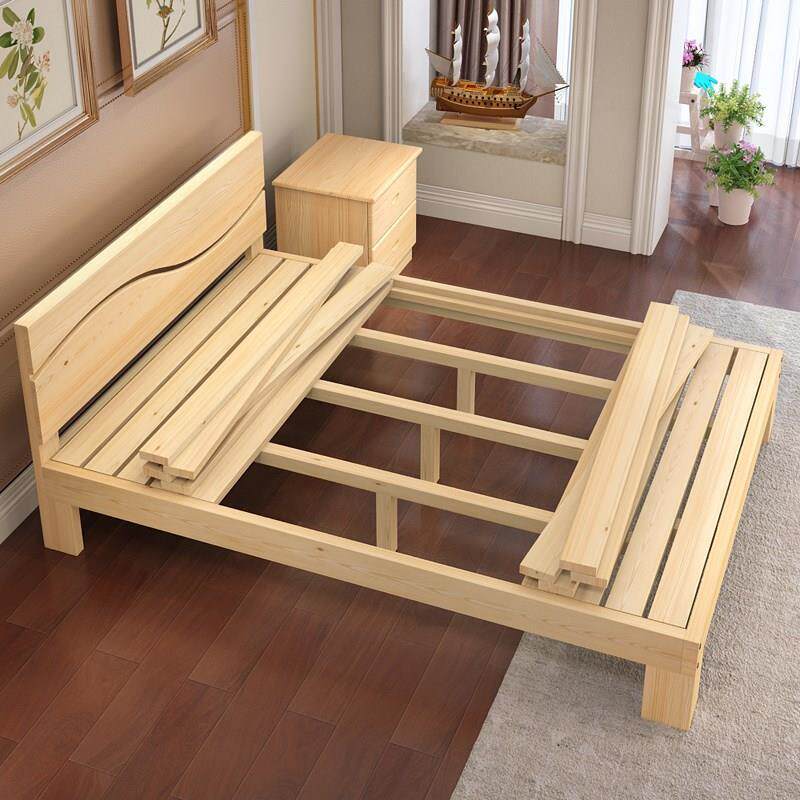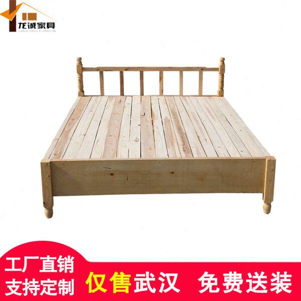 实木床松木单人床午休床出租房原木简易双人可加高家用简约定制床
