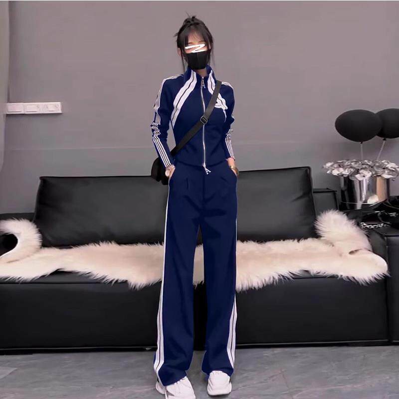 欧洲站跑步休闲运动套装女2025年新款春秋季高腰垂感直筒裤两件套
