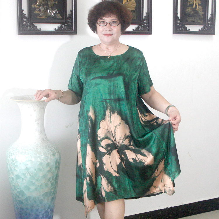 亏本清仓夏季真丝香云纱印花连衣裙特大码中老年女装宽松妈妈裙子
