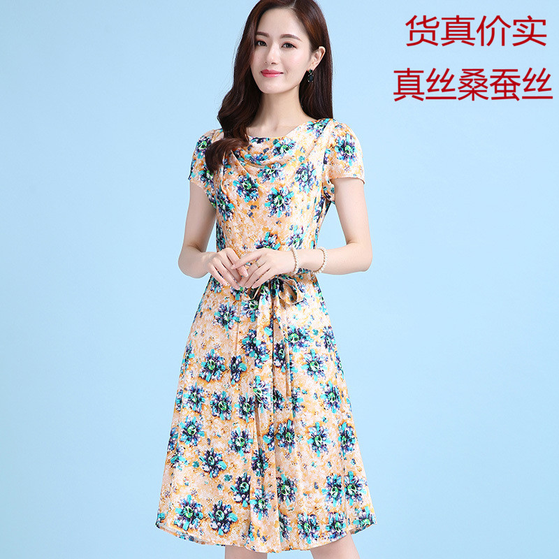 特价清仓夏季真丝女装正品新款妈妈裙子桑蚕丝大牌气质大码连衣裙