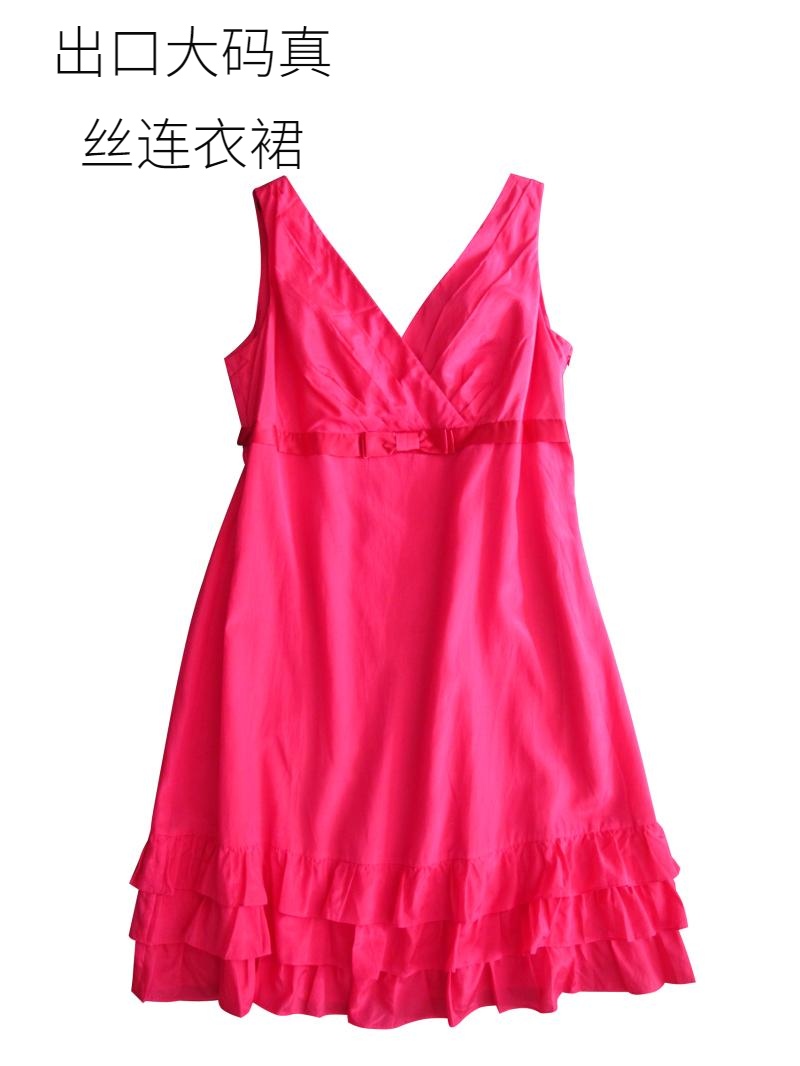 《断码清仓》真丝连衣裙修身显瘦V领100%桑蚕丝双层网纱大码长裙