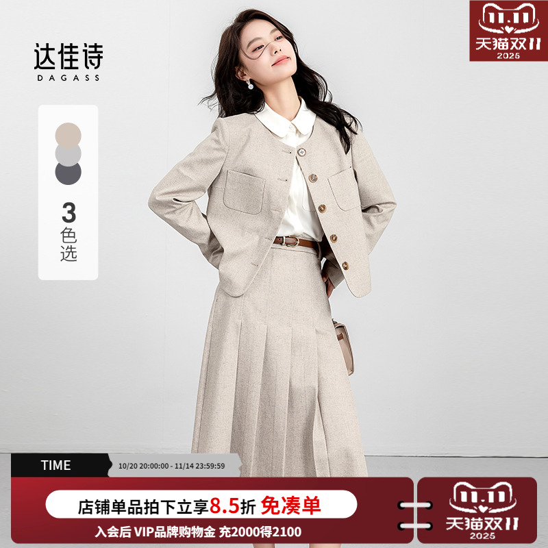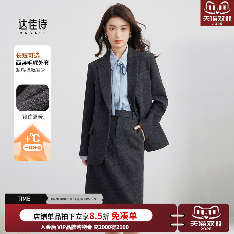 达佳诗教资面试灰色毛呢西装外套女冬正装加厚通勤半裙职业套装女