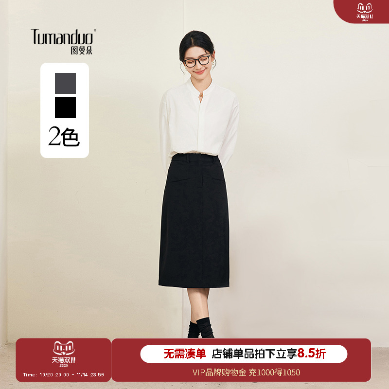 图曼朵黑色直筒西装半身裙女秋职场面试半身a字半裙正装工装裙子