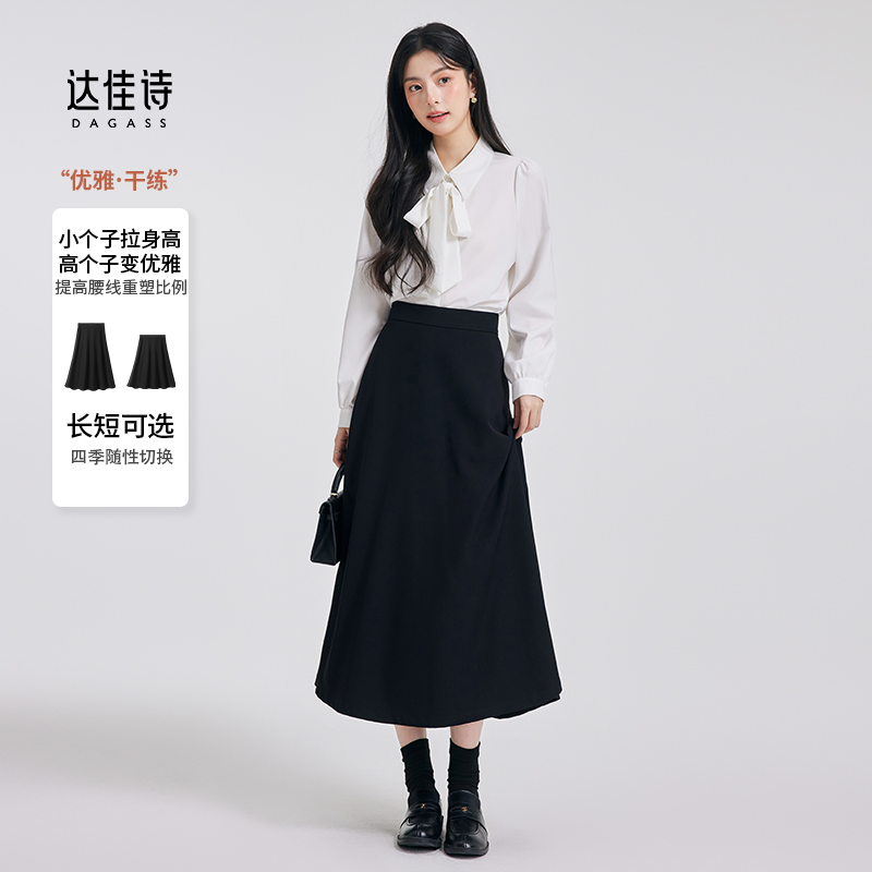 达佳诗教资面试黑色a字半身裙女春秋新款正装西装裙伞裙长款裙子