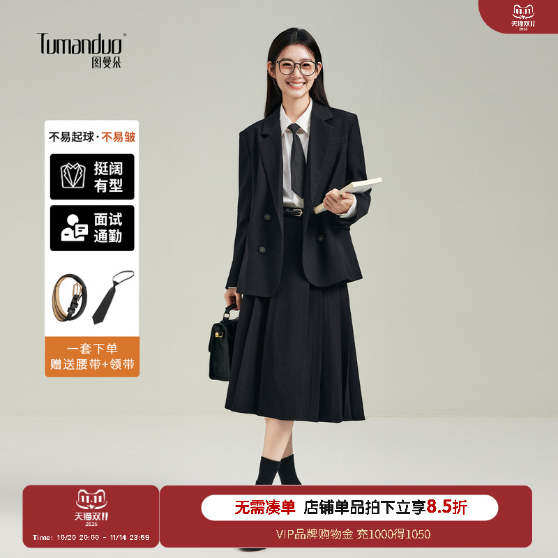 图曼朵灰色西装套装裙女生秋小个子面试正装学院风高级感西服外套