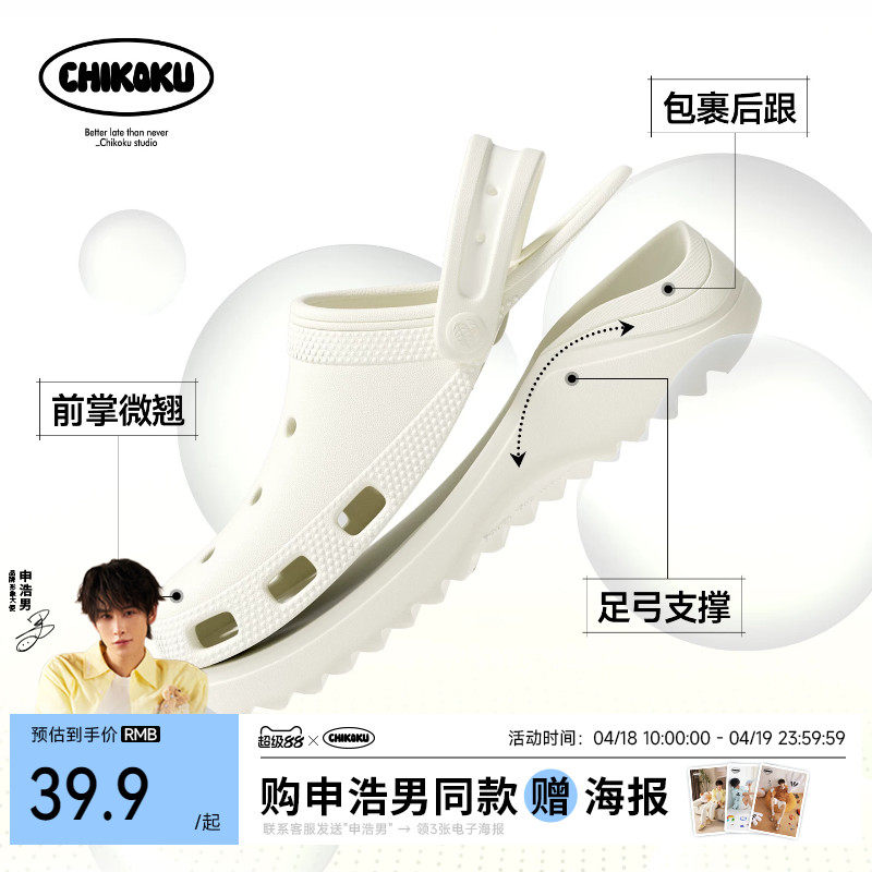 chikoku月芽高足弓支撑洞洞鞋女医护用防滑包跟扁平足矫正拖鞋男