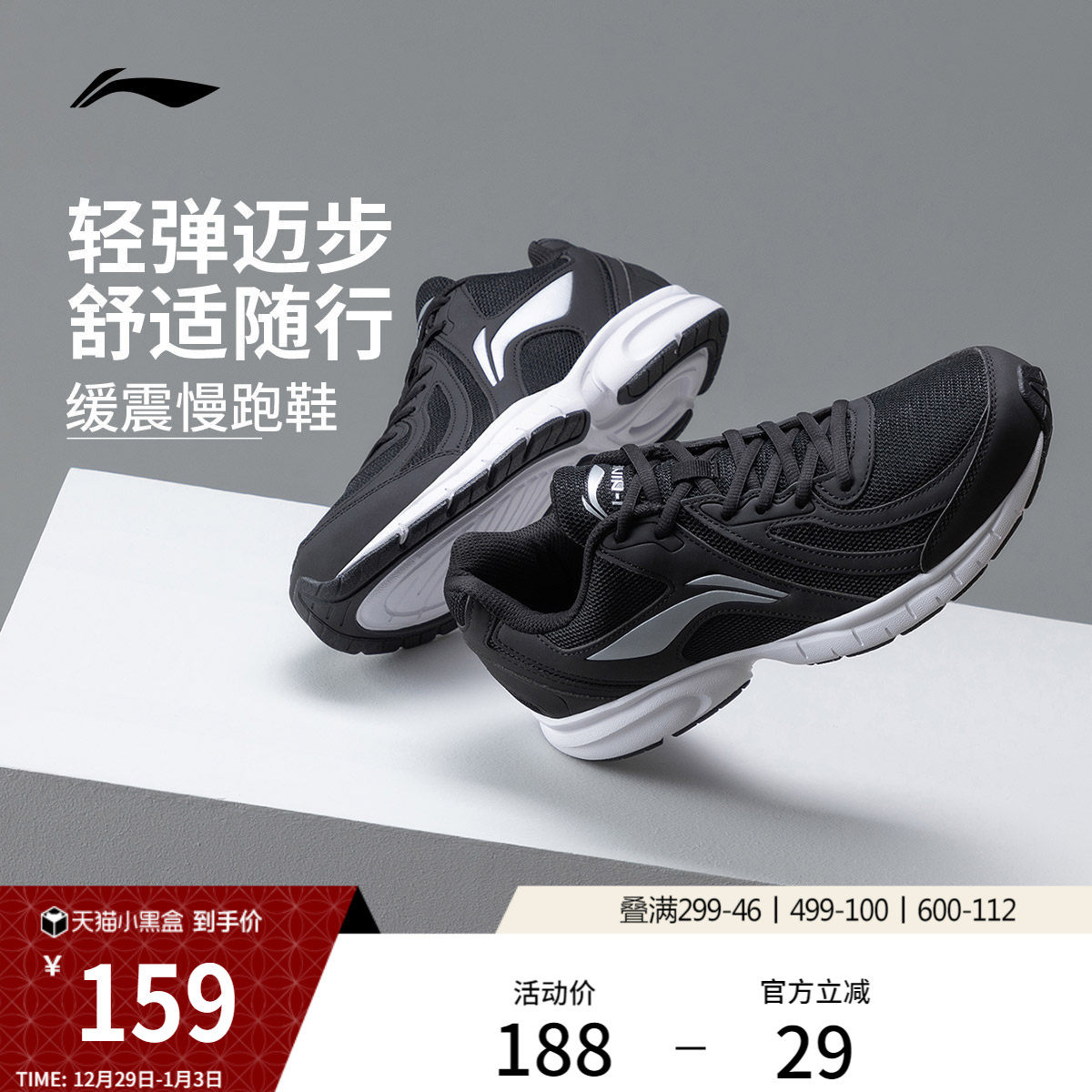 李宁跑步鞋男鞋官方减震耐磨网面轻便透气跑鞋黑色休闲慢跑运动鞋