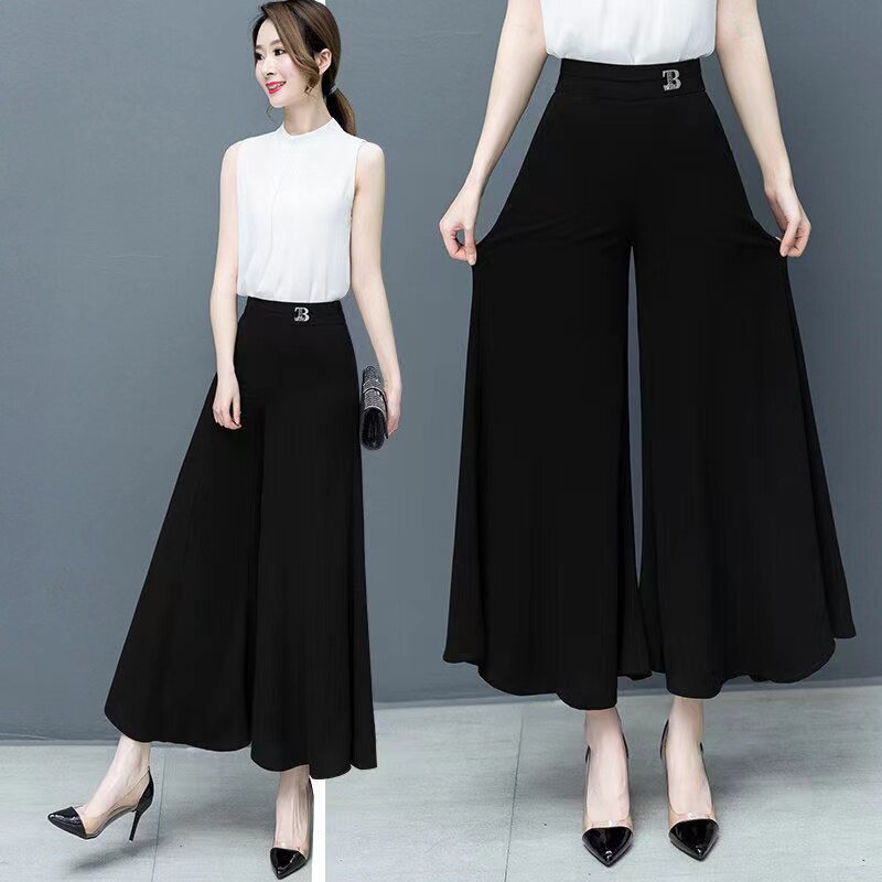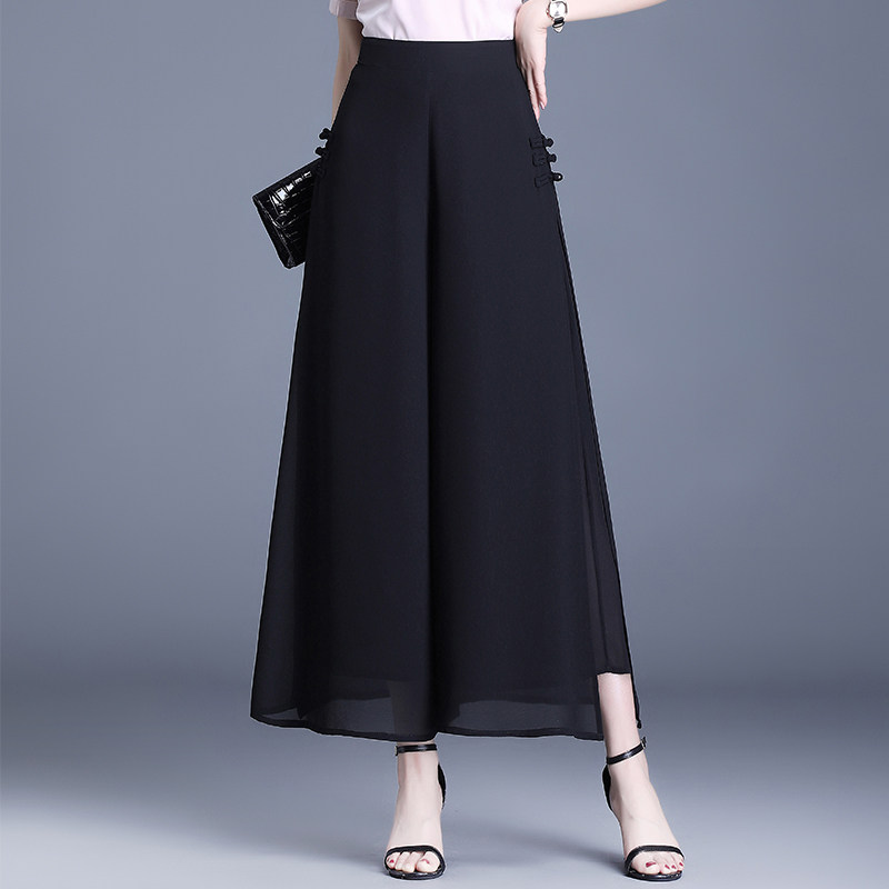 双层雪纺裤裙高腰大码九分裤坠感宽松甩裤开叉阔腿裤休闲大脚裙裤