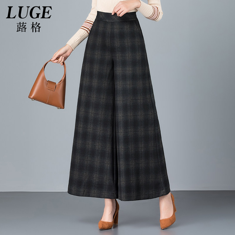 复古格纹裙裤阔腿裤女秋冬2025新款高腰宽松遮肉九分大脚裤休闲裤