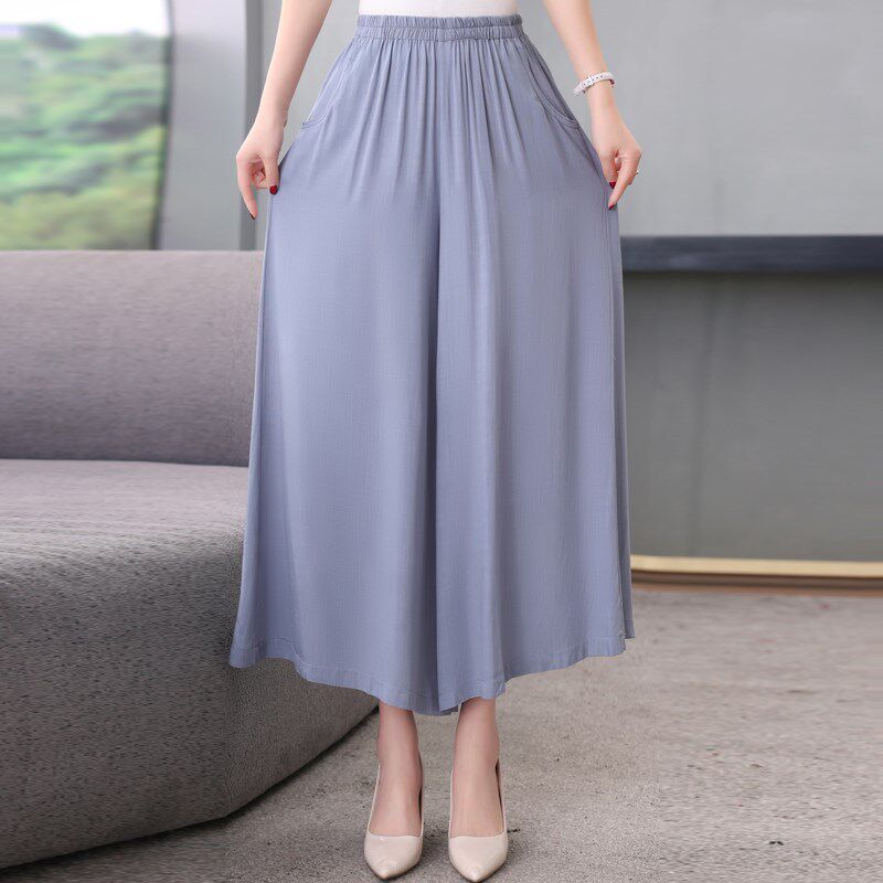 夏季新棉绸九分裤女松紧高腰裙裤中老年妈妈显瘦阔腿裤洋气大脚裤