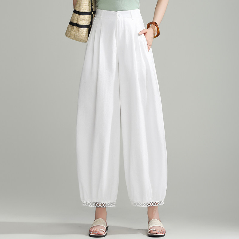 亚麻九分阔腿裤女夏薄款高腰宽松显瘦棉麻休闲女裤宽腿大脚裙裤子