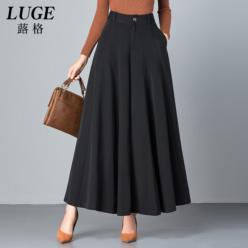 2025春秋新款黑色裤裙女式阔腿裤女春节裙裤高腰九分裤子大脚裤子