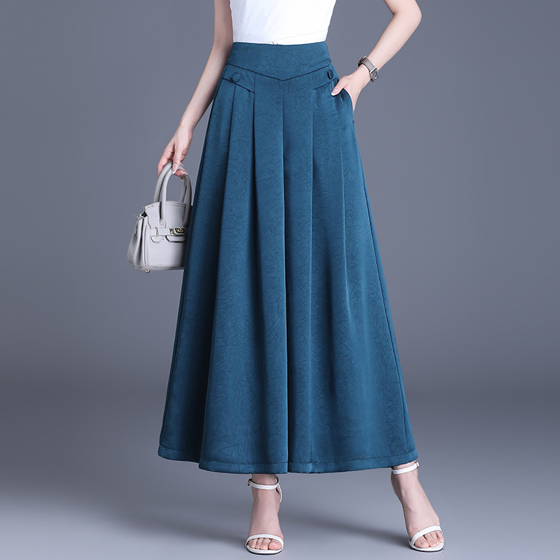 中老年女裤高腰显瘦垂感棉绸阔腿裤大脚裤裙裤宽松纯色九分裤薄款
