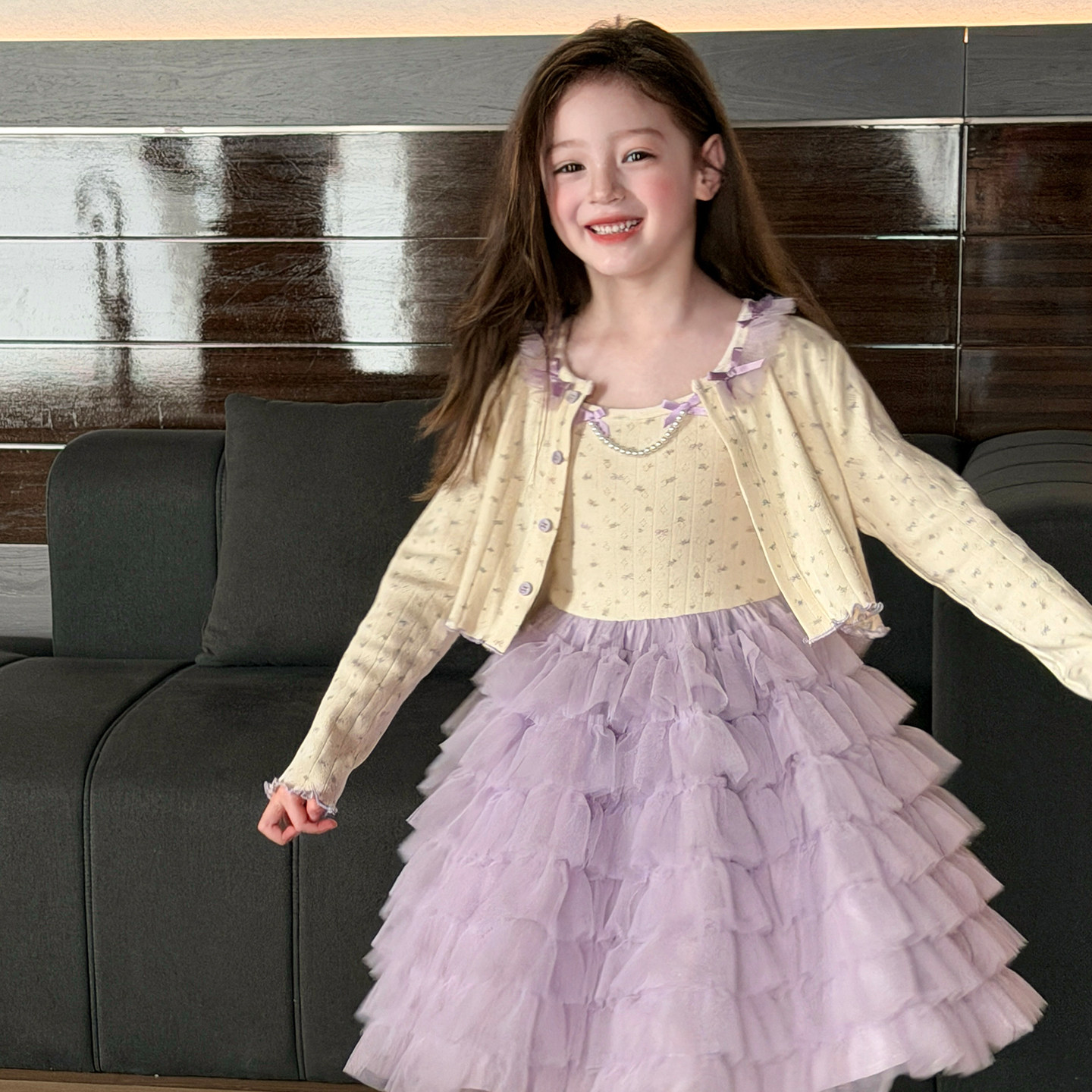 幼悠女童2026春秋新款小兔碎花连衣裙娃娃领衬衫叠穿吊带女孩套装