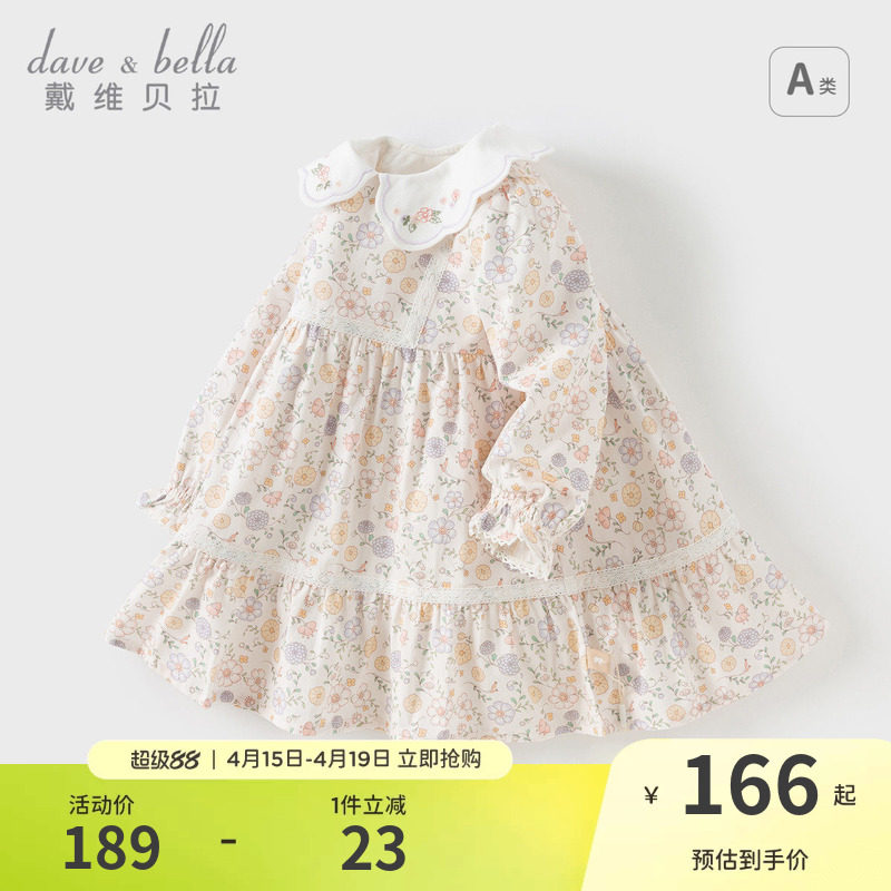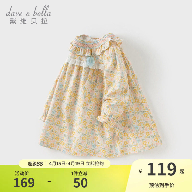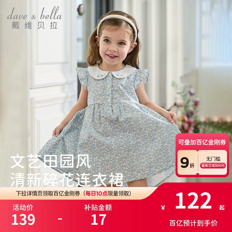 戴维贝拉儿童连衣裙2026女童新款印花裙子女宝宝纯棉碎花裙春装