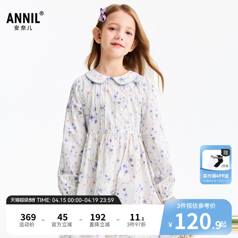 安奈儿童装女童长袖连衣裙2026春新款印花甜美纯棉时尚碎花裙子